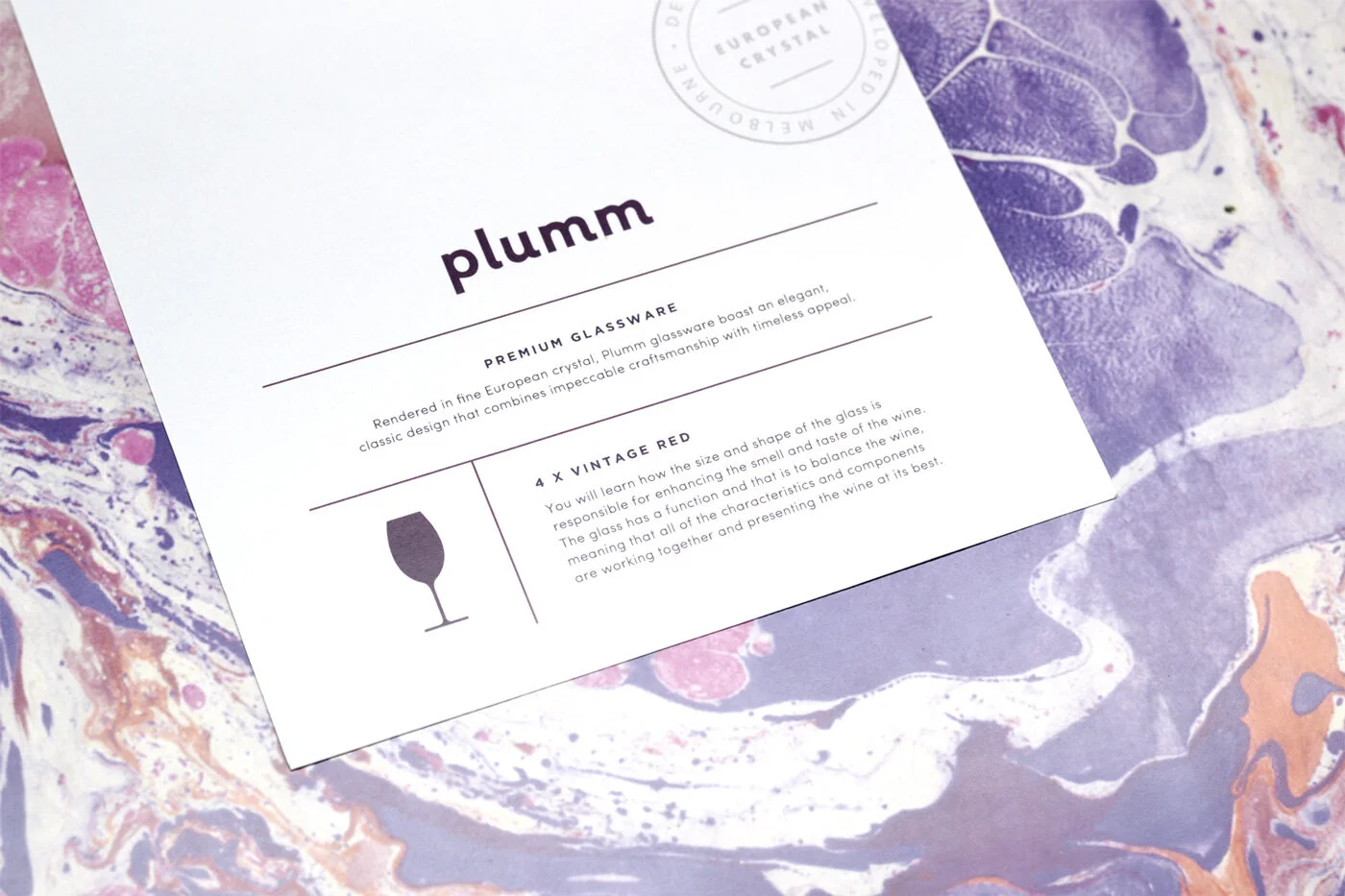 Brand identity concept for a wine-passionate Melburnian company manufacturing high quality glassware. Handmade marbling pattern reflecting the flow of wine and the beauty of hand-blown glass products.